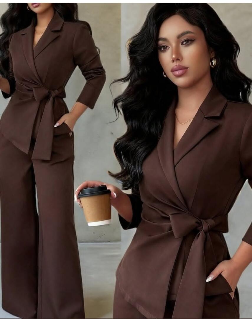 Sprzedam nowy raz przymierzony śliczny brązowy komplet w rozmiarze XL. (okazał się za duży na mnie) Kopertowa góra daje możliwość regulacji, spodnie na gumce - modne szerokie nogawki. Kupiłam za 150 zł a sprzedaje za 100zl.